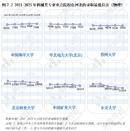 985、211等高条理院校近五年登科位次走势并未呈现较着集体倾向,各校波动非常值较少,全体不变。以省为例,选择招生打算波动较小的六所高校进行展现,能够看出各校登科位次均未呈现大的波动,当然,各校环境有所分歧,中国海洋大学小幅上涨,华北电力大学()、姑苏大学极其平稳,中国矿业大学和长安大学正在缩招的环境下位次仍然呈现下滑。