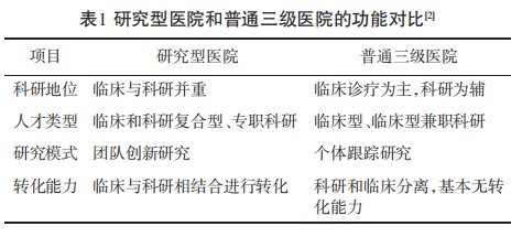 取一般病院的差别正在于,研究型病院除了完成临床医疗使命外,还承担了培育高程度医学人才、开展立异性科学研究以及制定和修订临床医学尺度和规范等使命。2021年,《中国研究型病院扶植指南》进一步明白了研究型病院的概念和特点,通过临床取科研并举,不竭发生和前沿医学学问和手艺、培育高条理人才、鞭策临床手艺程度持续提高,为卫生事业和人类健康贡献力量。研究型病院的根基特征就是临床取科研交融并举,有不变的原创性、冲破性产出。取通俗病院比拟,研究型病院把临床疑问复杂疾病、人平易近健康的严沉疾病做为科研的内核;正在诊疗方式上,临床取科研并沉,以临床为导向进行科学研究,并将科研为临床医治能力取手艺;正在诊疗方针上,不局限于处理个体病人的问题,着眼于从根源、方式长进行研究,以期处理一系列底子性医学问题;正在人才培育上,以培育临床科学家为方针(见表1)。